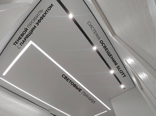 Дизайнерский потолок с теневым профилем и световыми линиями